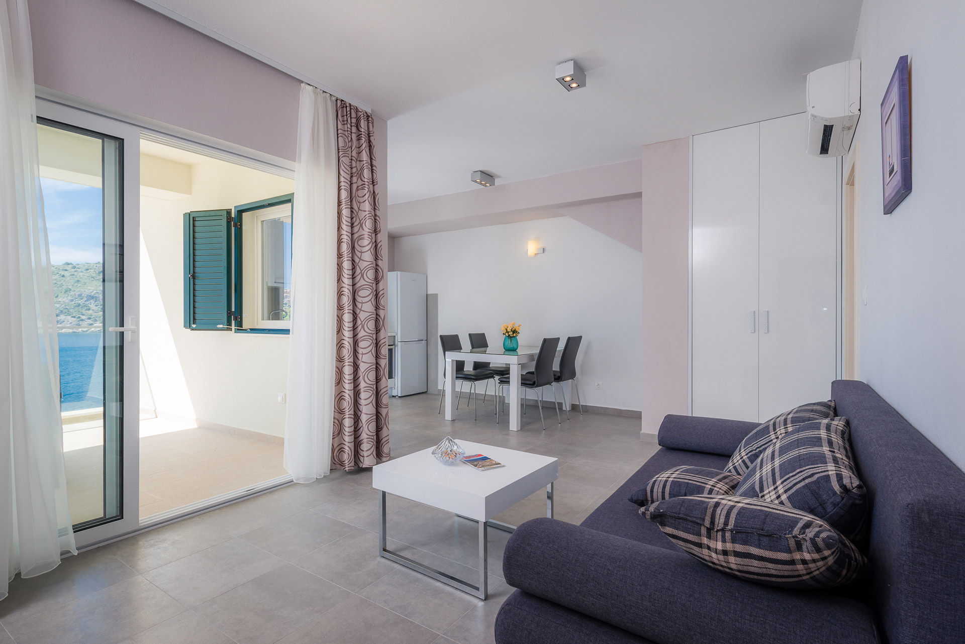 This air-conditioned apartment at Lanterna Apartments includes a comfortable king-size bed for two people and a sofa bed suitable for two additional guests. The apartment also features a balcony with views of the Adriatic Sea, a well-equipped kitchen, and a flat-screen TV with satellite channels. Additionally, it offers a bathroom with a shower, a hairdryer, and complimentary toiletries.