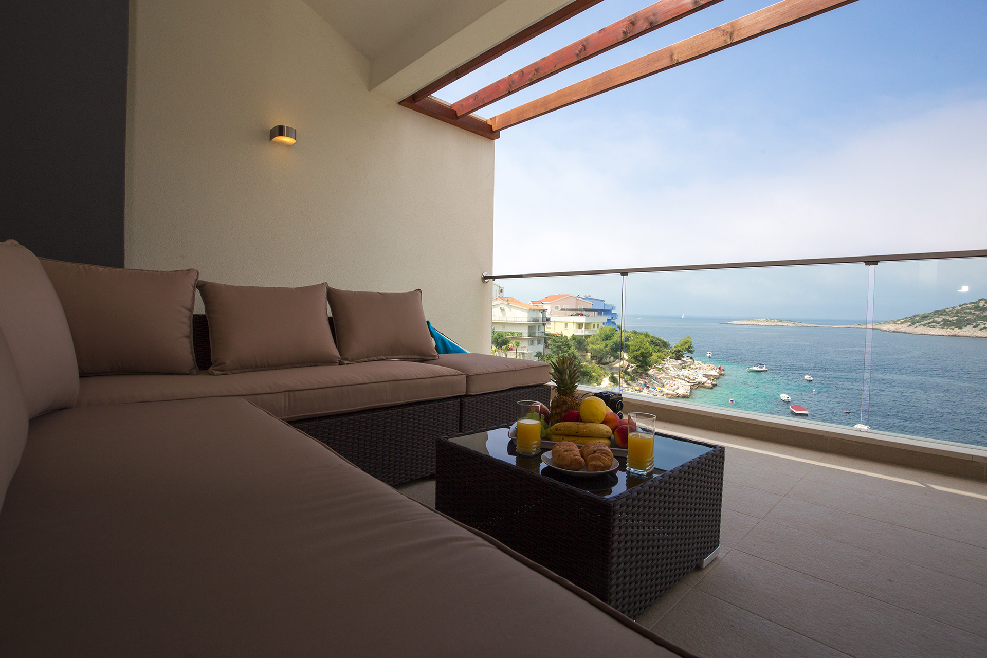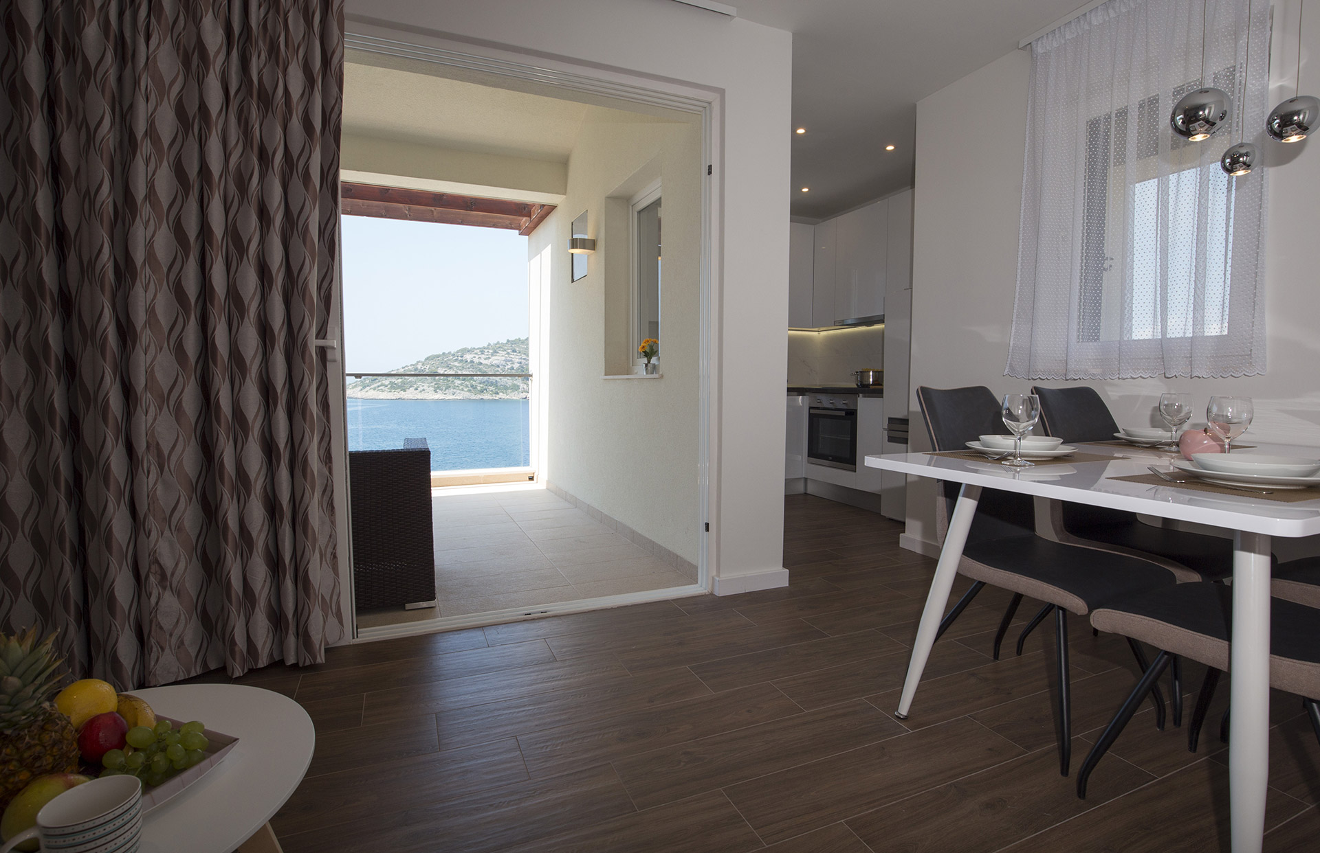 This spacious apartment includes a living room, a separate bedroom with a king-size bed, and a bathroom with a walk-in shower and complimentary toiletries. The well-equipped kitchen features a stovetop, refrigerator, dishwasher, kitchenware, and a barbecue for outdoor cooking. The air-conditioned apartment offers a private entrance, soundproof walls, a flat-screen TV with satellite channels, and a tea and coffee maker, all while providing stunning sea views. Additionally, the living room includes a sofa bed that can comfortably accommodate two additional guests.